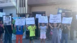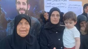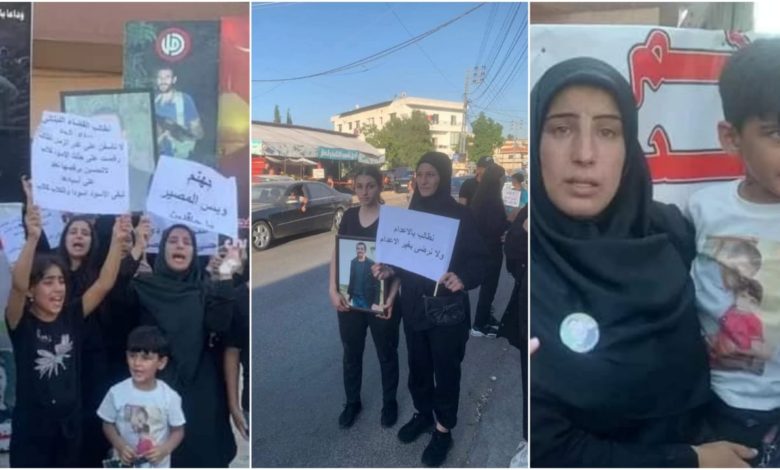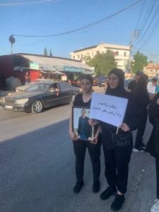 ورفع المحتجون صورا لرمال وقبيسي وأخرى لأحمد سامي قانصو وابنه حسين كتب عليها “الاعدام لكما” ، كما رفعوا لافتات تطالب القضاء بإحقاق الحق وانزال عقوبة الاعدام بالمجرمين.