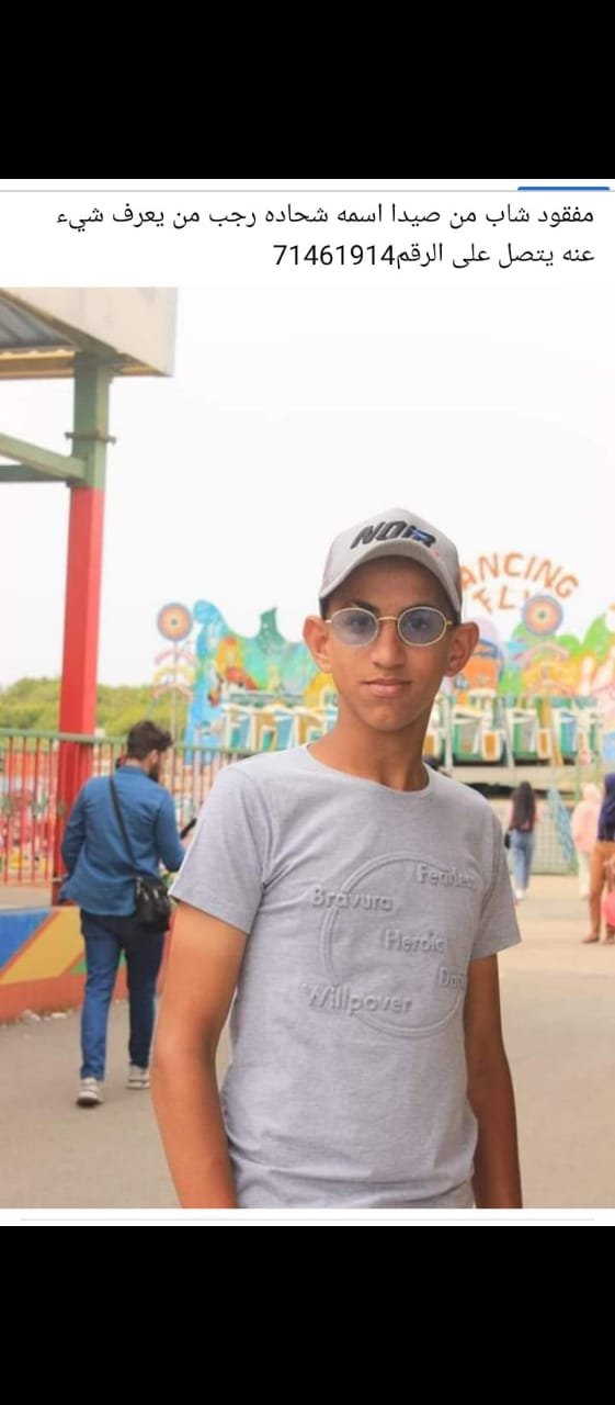 ناشدت عائلة رجب في #صيدا القديمة السلطات الأمنية تكثيف تحرّياتها من أجل كشف مصير ابنها شحادة رجب (17 عاماً) الذي فقد واختفى عن أنظار عائلته منذ يوم الأربعاء الفائت أثناء قيامه ببيع وشراء الدولار الأميركي في الشارع ولمصلحة الغير، أسوة بغالبية ال#صرافين المتجولين في صيدا.