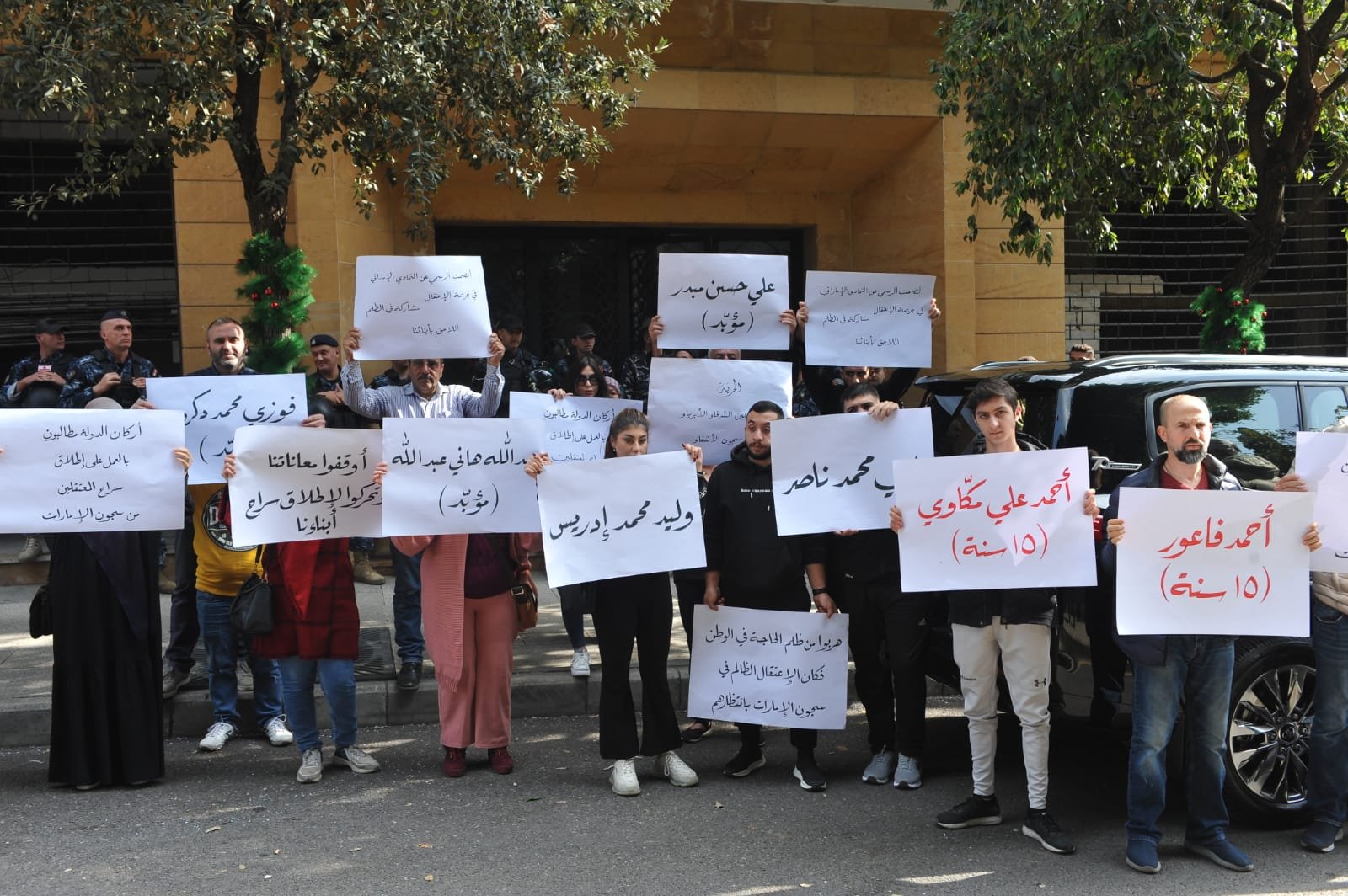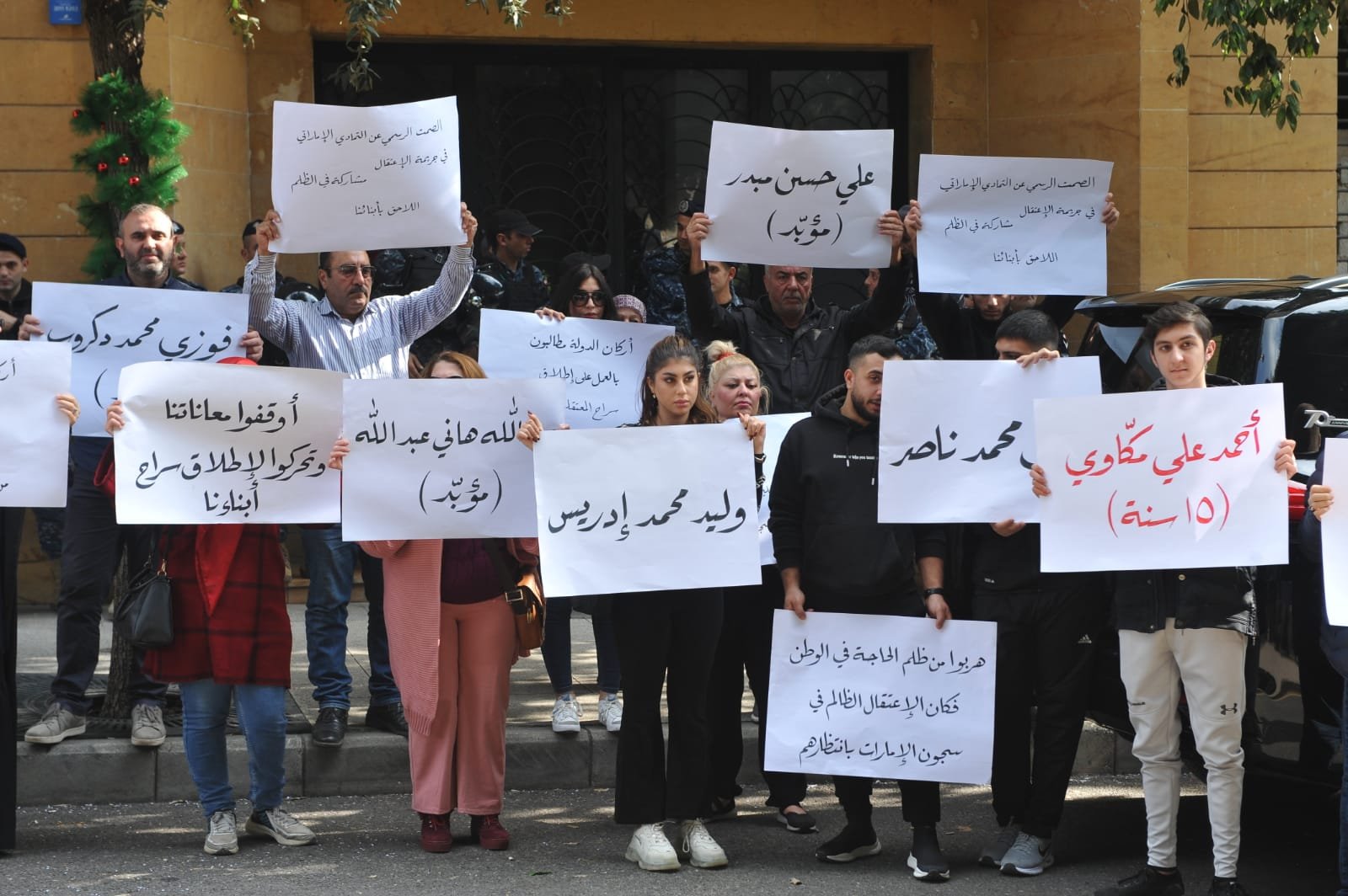 نظّمت لجنة المتابعة لأهالي المعتقلين في سجون الإمارات قبل ظهر اليوم وقفة احتجاجية أمام مقر وزارة الخارجية في وسط بيروت للمطالبة بالإفراج عن اللبنانيين المعتقلين دون وجه حق ودون محاكمه، شارك فيها حشد من الأهالي الذين رفعوا اليافطات ورددوا الشعارات التي تندّد باستمرار الإعتقال.