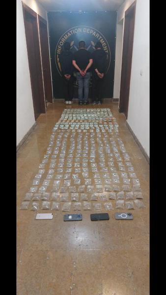 بتاريخ 14-05-2024 وبعد عملية رصد ومراقبة دقيقة، تمكنت دوريات الشعبة من توقيف الأول بالجرم المشهود في محلة الكفاءات أثناء قيامه بتوزيع المخدّرات على المروّجين على متن دراجة آلية نوع سويت دون لوحات تم ضبطها، كما نفّذت عملية متزامنة نتج عنها توقيف الثاني والثالث في محلة المعمورة أثناء قيامهما بترويج المخدّرات على متن دراجتين آليّتَين دون لوحات نوع “لاندي” و”۷۱5۰” تم ضبطها. بتفتيشهم والدراجات عُثِرَ على: