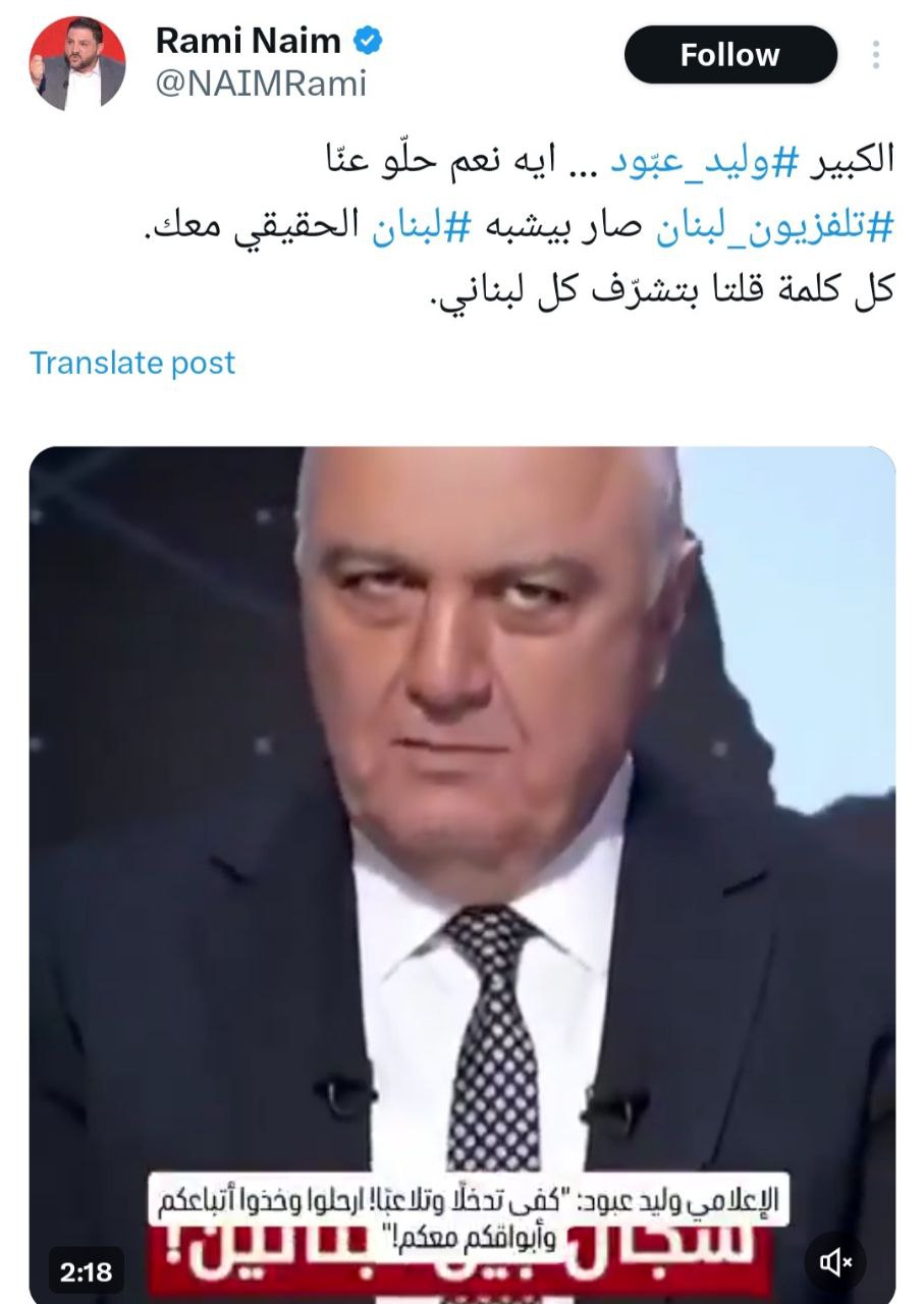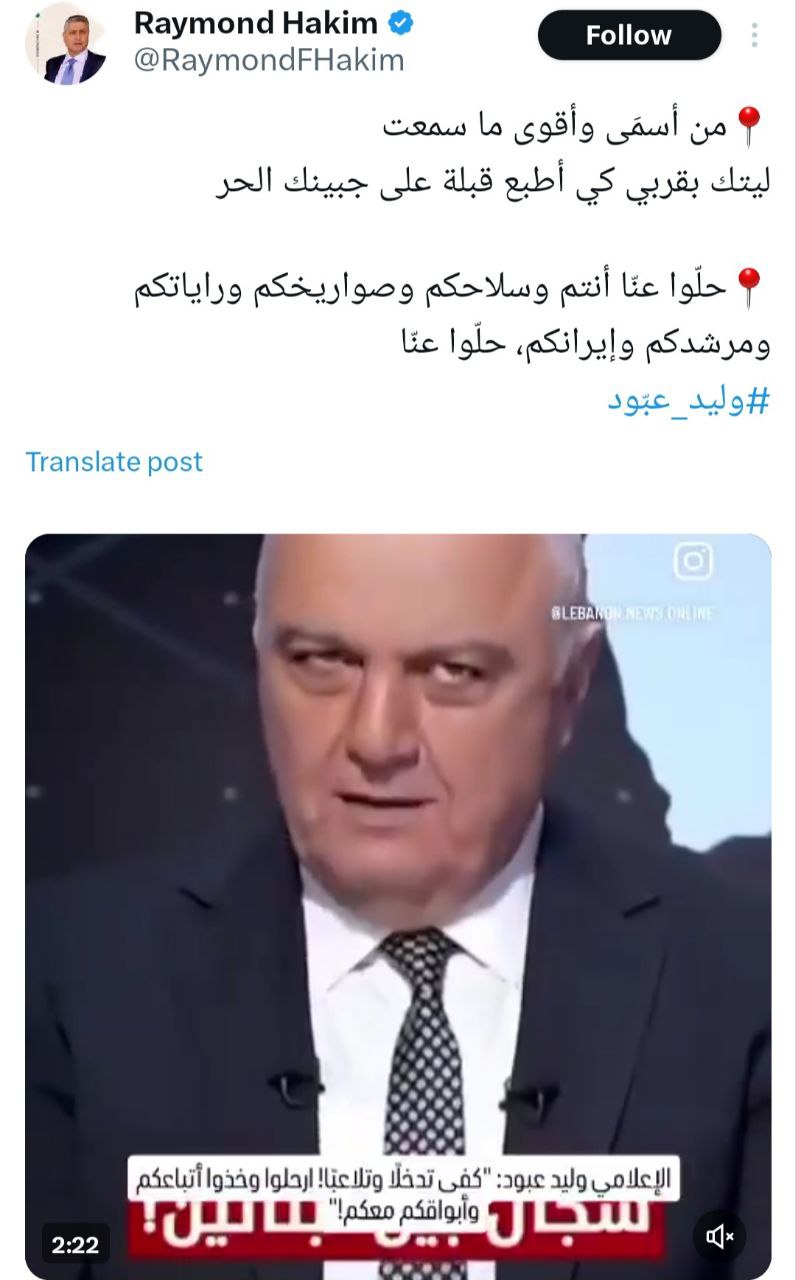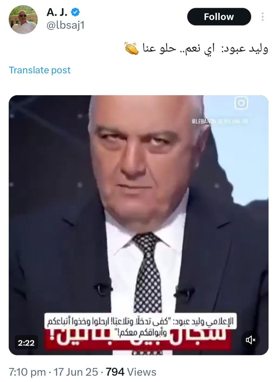 بعد استخدامه عبارة “حلّوا عنّا” … حملة تضامن مع الإعلامي “وليد عبود” من بعض نشطاء القوات اللبنانية “يمثلنا” … السؤال المطروح “أين وزير الإعلام من هذه الخطابات العنصرية؟”