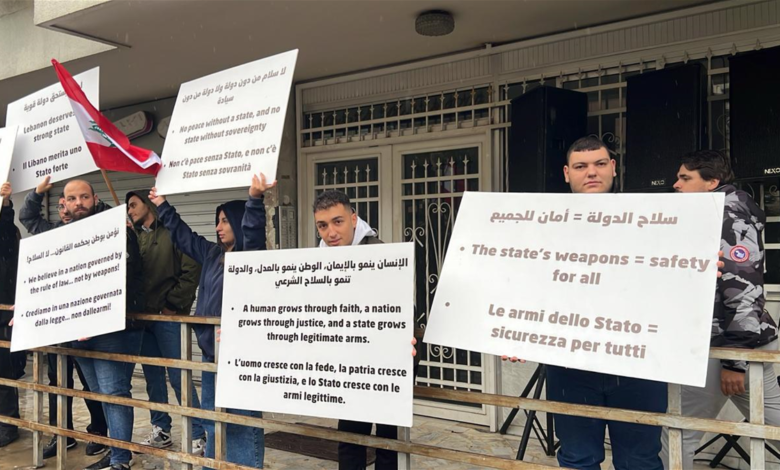 بالصور/ بشعارات ضد الـ. ـSـلاح … وقفة “قواتية” أثناء مرور البابا