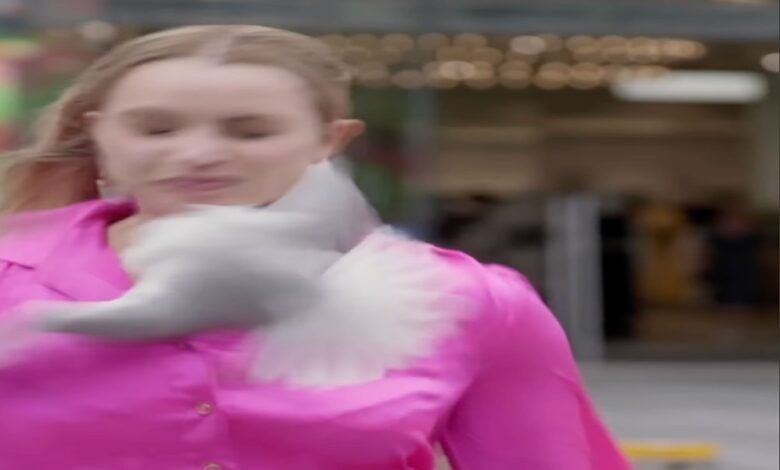 وقد نشرت المراسلة جيسيكا تايسون، عبر إنستغرام مقطع الفيديو الذي ظهرت فيه وهي ترتدي قميصاً زهرياً وتنقل تقريراً أمام الكاميرا وسط رياح قوية، قبل أن يفاجئها طائر نورس ويصطدم مباشرة بوجهها، ما جعلها تتراجع مذهولة وهي تمسك وجهها.
